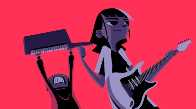 En el universo visual de «Eso Aquí No», cada canción tiene su propio visualizer animado, protagonizado por Tachín y Nena, dos hermanos bogotanos que funcionan como el espejo simbólico de las emociones que atraviesan las canciones.